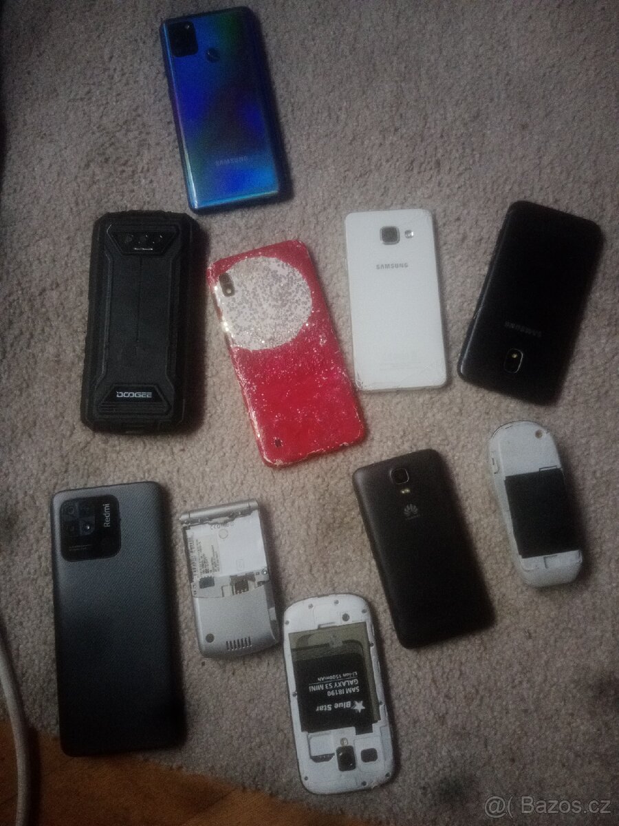 Dotykové mobily a i klasické tlačítkové mobily - nepoškozené a i poškozené a většina i funkční,ale jsou už bez nabíječek.
