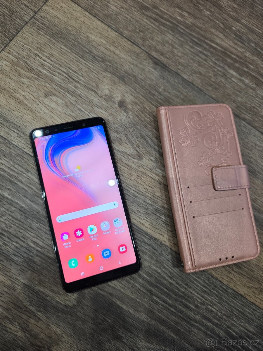 Samsung Galaxy A7 s třemi fotoaparáty 24+8+5 Mpx, předním 24 Mpx fotoaparátem, 6“ FHD Super AMOLED displejem, osmijádrovým procesorem, 4 GB RAM, 64 GB interní paměť, microSD slot, Dual SIM, 4G/LTE, GPS, GLONASS, NFC, čtečkou otisků prstů, baterií 3 300 mAh