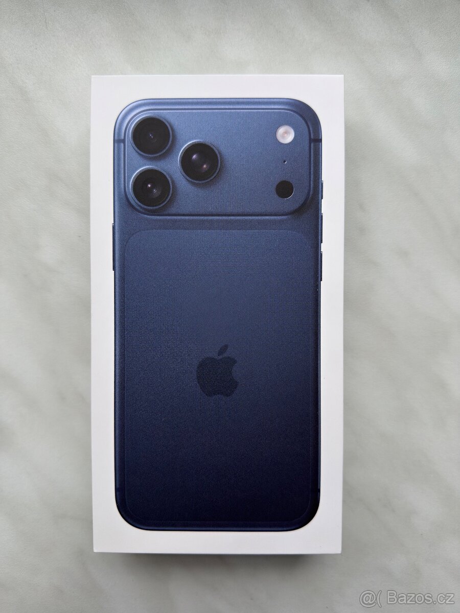 Dobrý den, prodám Apple iPhone 17 Pro Max 256GB v barvě Blue (modrá). Telefon je zcela nový, nerozbalený a zalepený v krabičce.