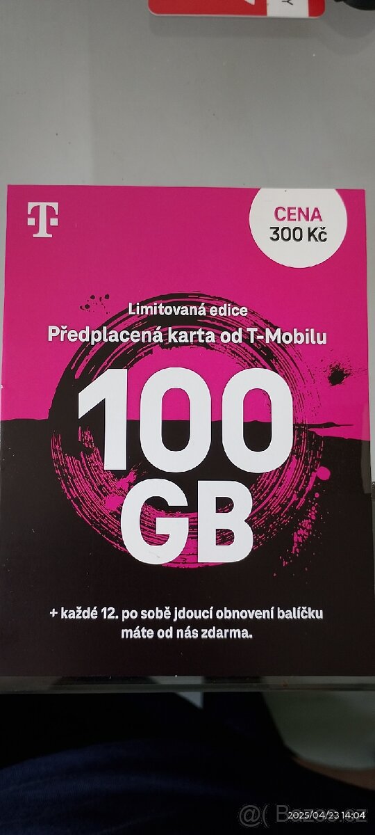 SIM karta T-Mobile 100 GB - [28.1. 2026]Prodám novou nerozbalenou kartu-Limitovaná edice T-Mobile 100GB SIM s pořádnou porcí dat jen za 300 Kč měsíčně. Bez úvazku. Při pravidelné obnově máte navíc každé 12. obnovení balíčku 100 GB ZDARMA. Při pravidelném používání se tak můžete dostat na č ...