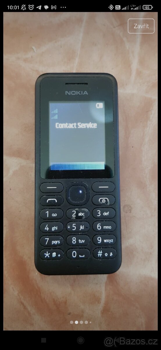 Tlačítkový mobilní telefon Nokia 130 na díly nebo opravu. Telefon zobrazuje pouze hlášku „Contact service“, jak je vidět na fotkách. Taky má ošoupanou klávesnici. Telefon je na dvě SIMkarty a Micro SD kartu.
