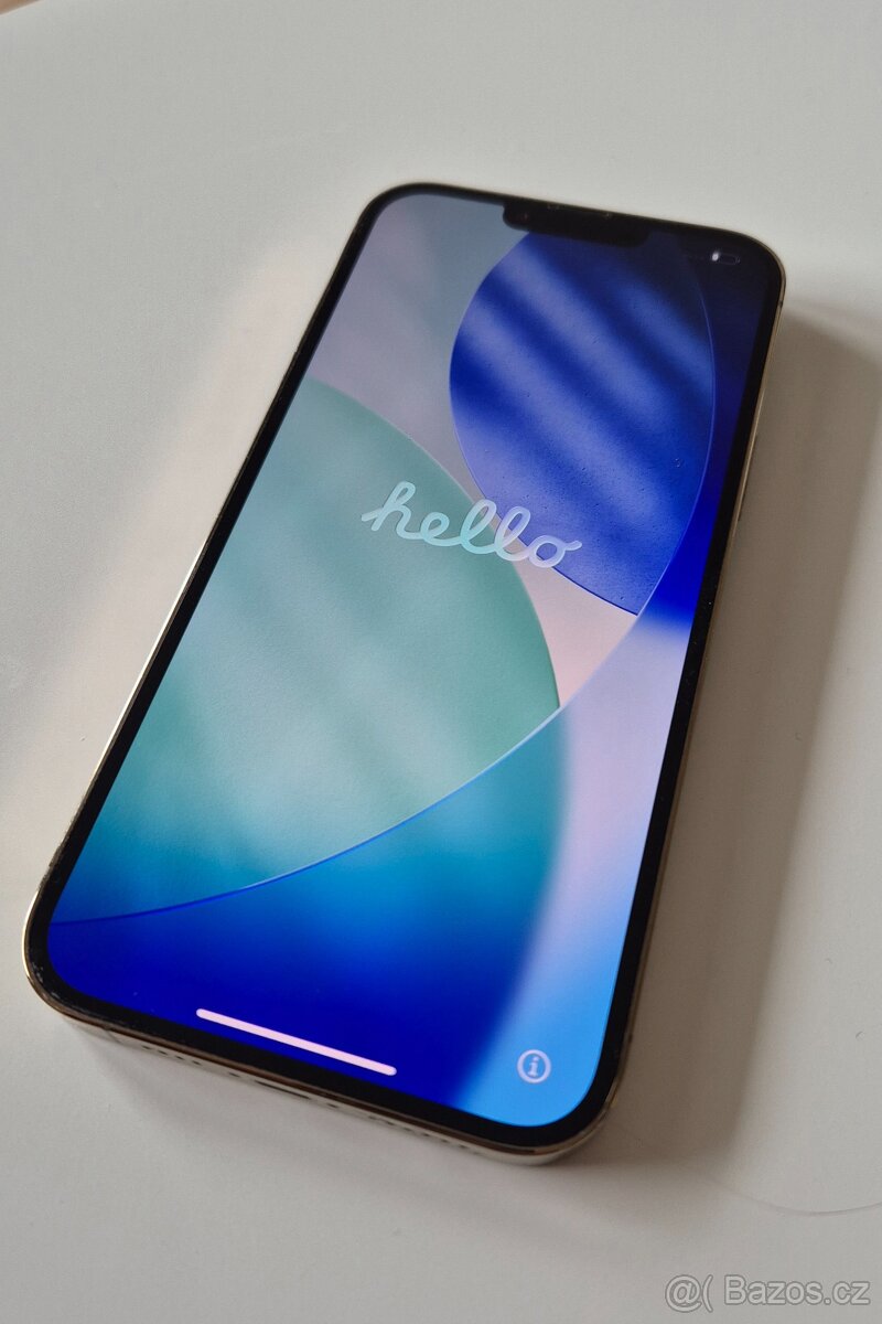 Prodám Apple iPhone 13 Pro Max, 128GB Gold, zlatý. Telefon bez škrábanců a jakéhokoliv poskozeni. Vždy s ochranným sklem a v pouzdře. Kapacita baterie 86%. Předání v Praze.