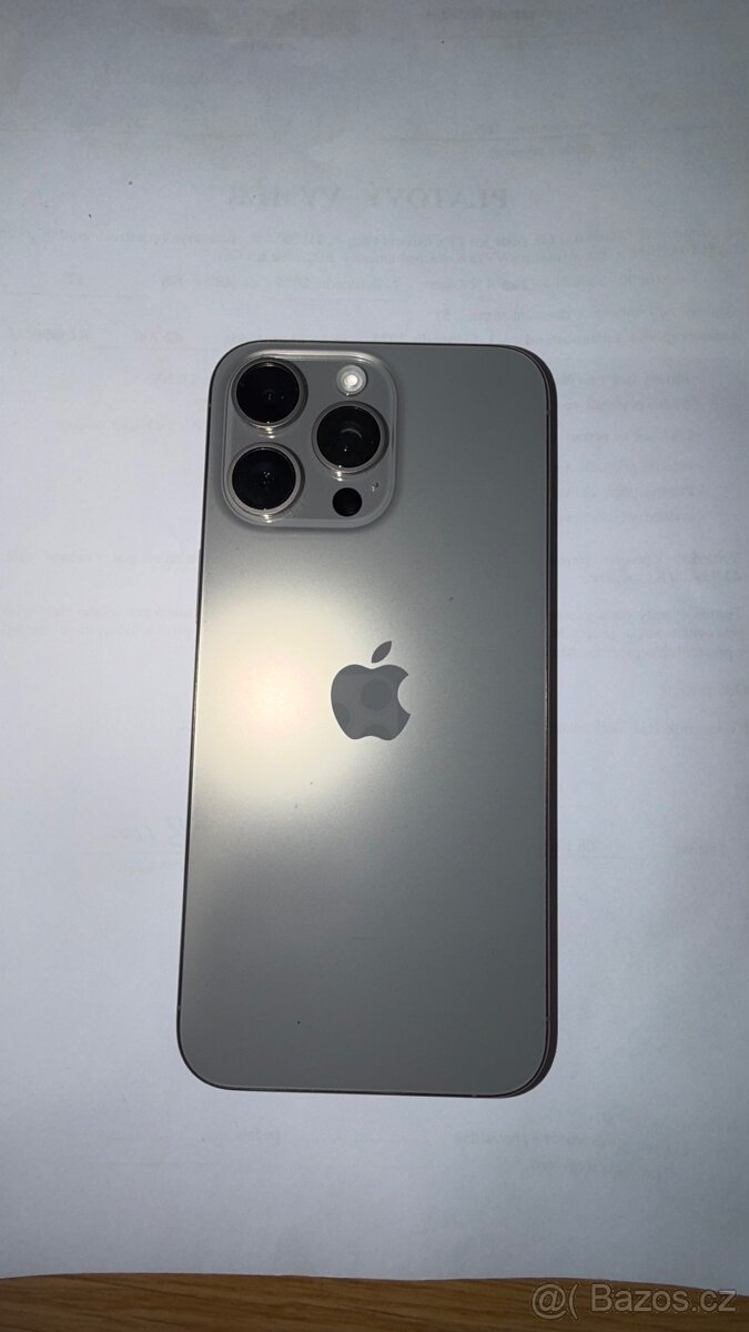Prodám 2 roky používaný iPhone 15 pro max, 1T, barva Přírodní titan