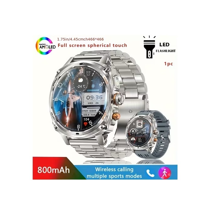 chytré hodinky s vysokou konfigurací, LED svítilna, více režimů menu, hlasový asistent, baterie s velkou kapacitou 800 mAh a dlouhou výdrží, 4,32 cm HD vysokorozlišovací displej super AMOLED, více sportovních režimů vhodné pro iPhone/Android