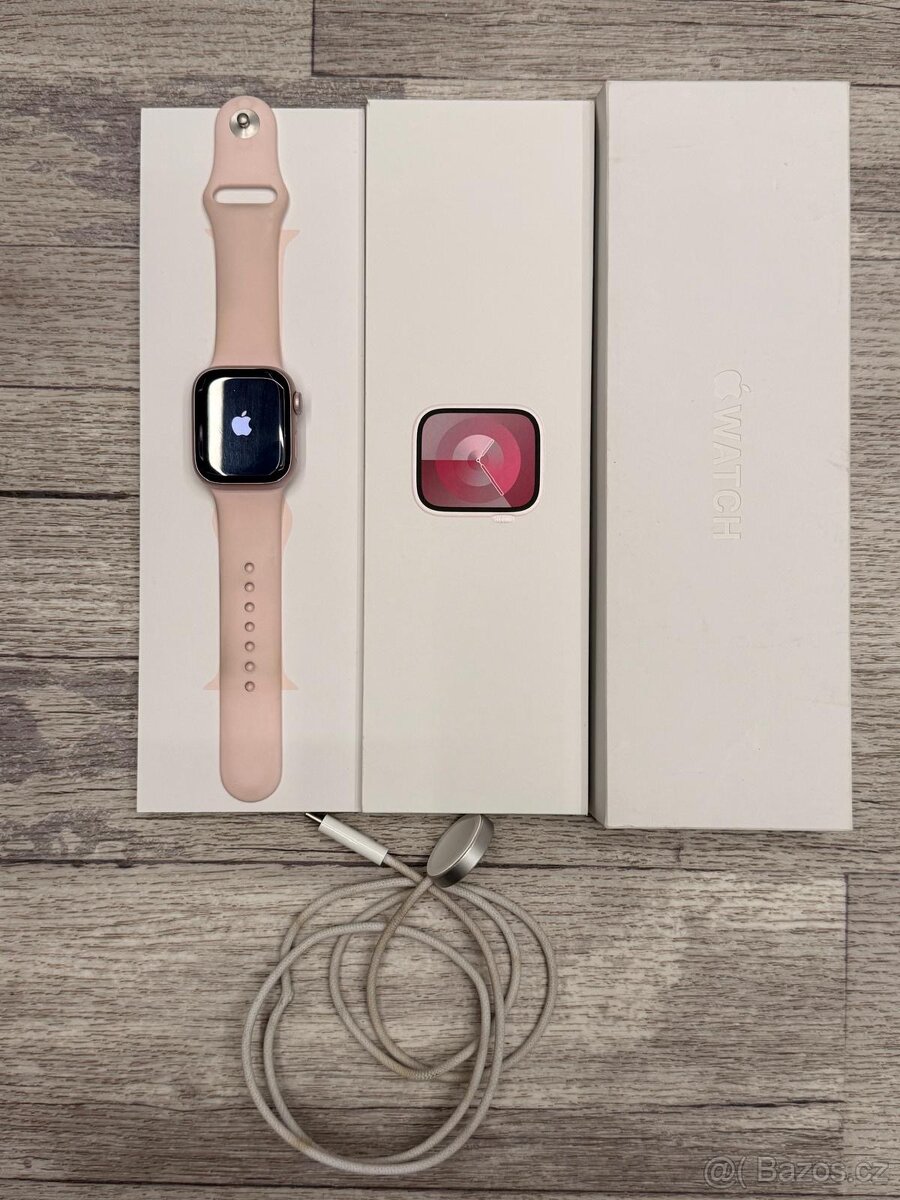 Apple Watch Series 9 GPS + Cellular 41 mm růžové hliníkové pouzdro se světle růžovým sportovním řemínkem a dalšími na vic. Záruka do 5/2026
