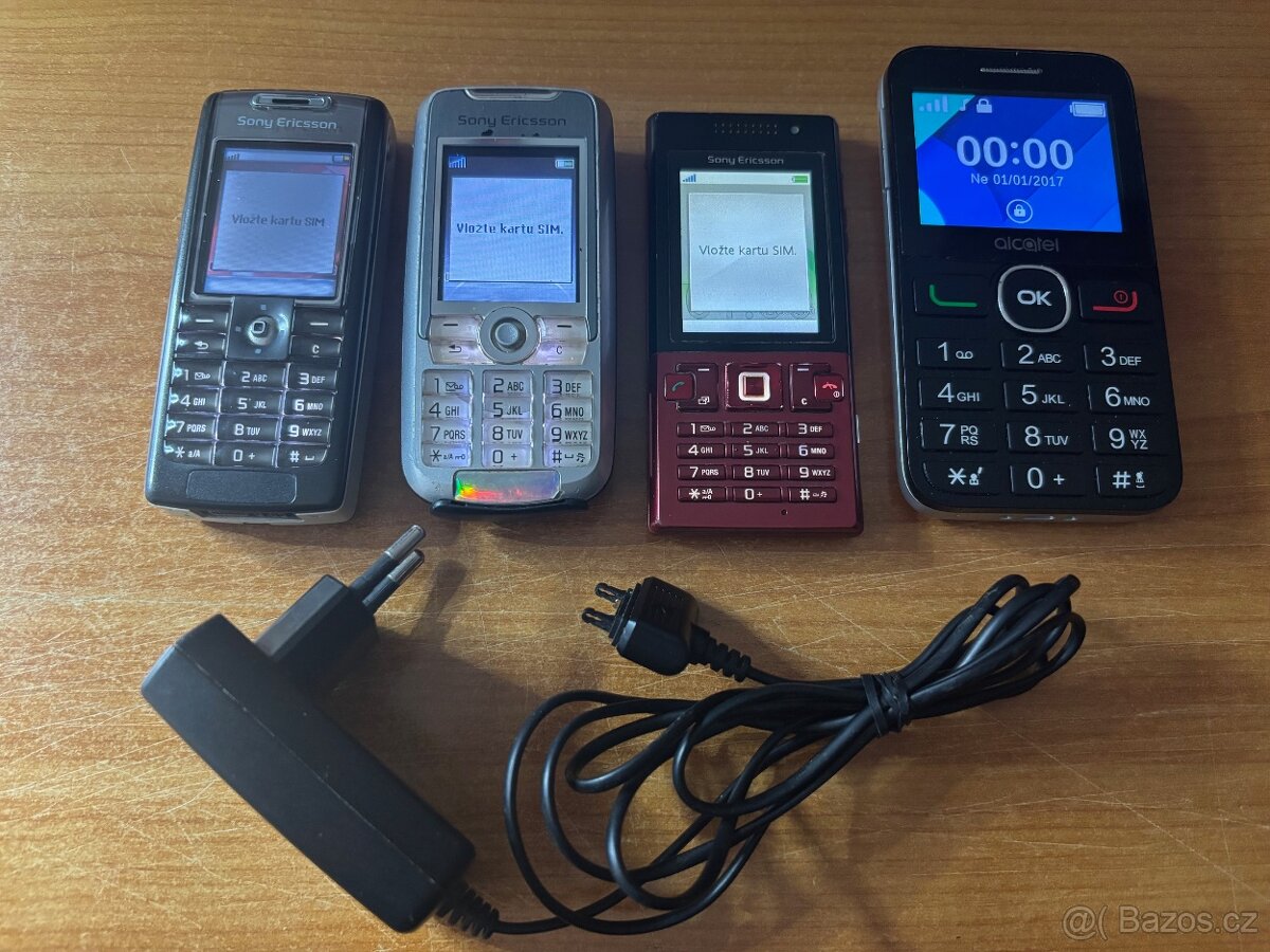 Prodam 4ks telefonu,Sony Ericsson T630,K700i,T700i + Alcatel 2008G,vsechny funkcni,vyzkousene hovorem,vsechny vcetne baterek,pridam jednu orig, nabijecku na SE ( viz foto ) cena za vse 999kc