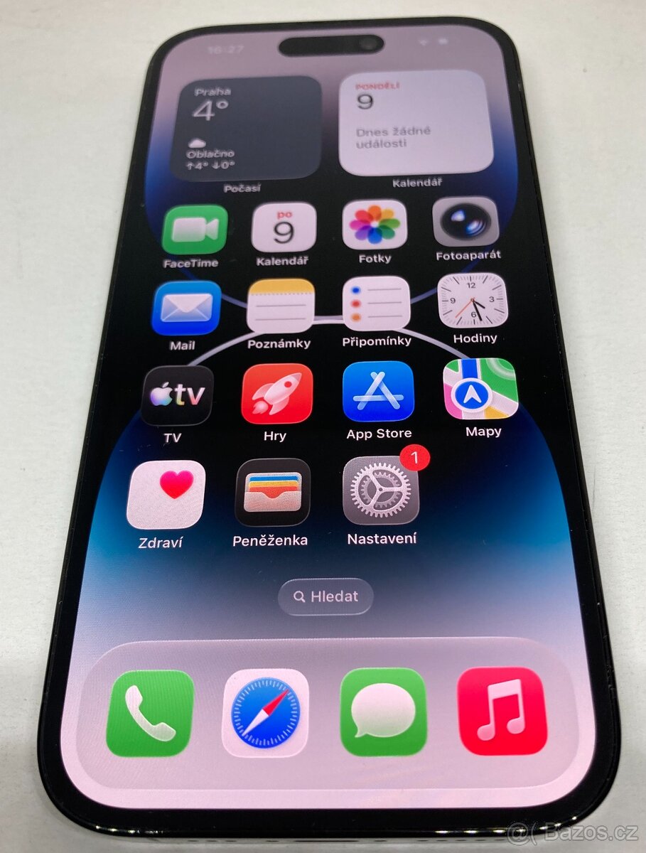 Prodám iPhone 14 Pro v černé barvě s úložištěm 256 GB.