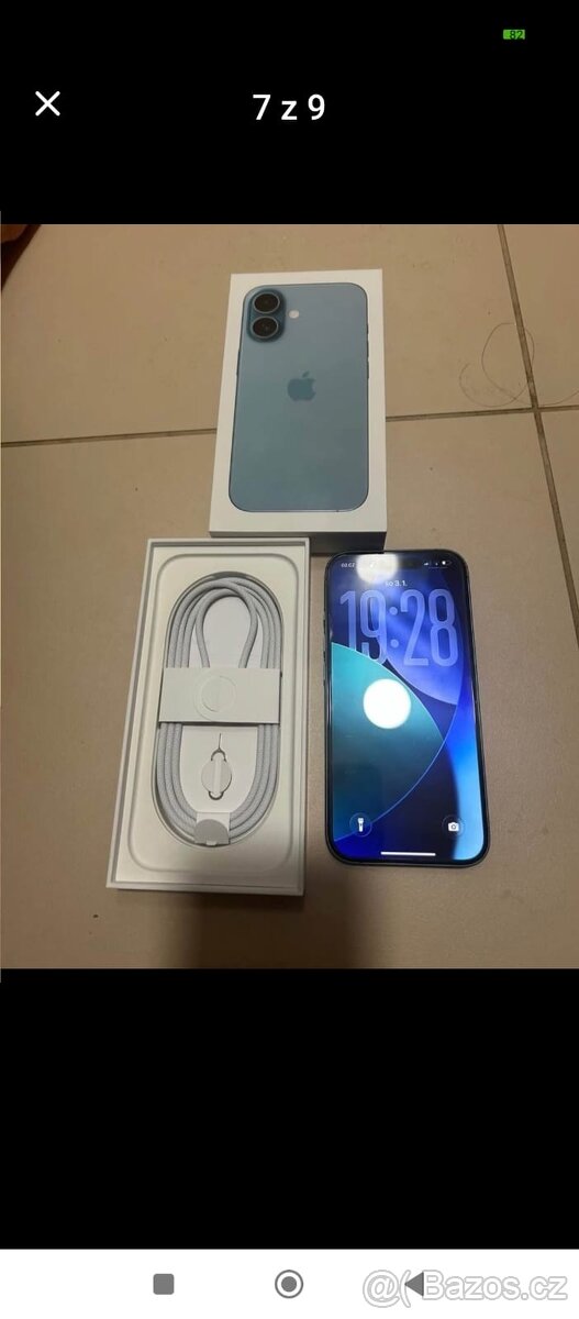 iPhone 16 128 GB Baterie 100% - [12.2. 2026]iPhone 16 128 GB Ultramarine, jako nový, bez škrábanců a poškození, vše funguje, jak má. Telefon nebyl opravován ani otevírán. Baterie 100 %, 19 nabíjecích cyklů. Součástí balení je krabička.