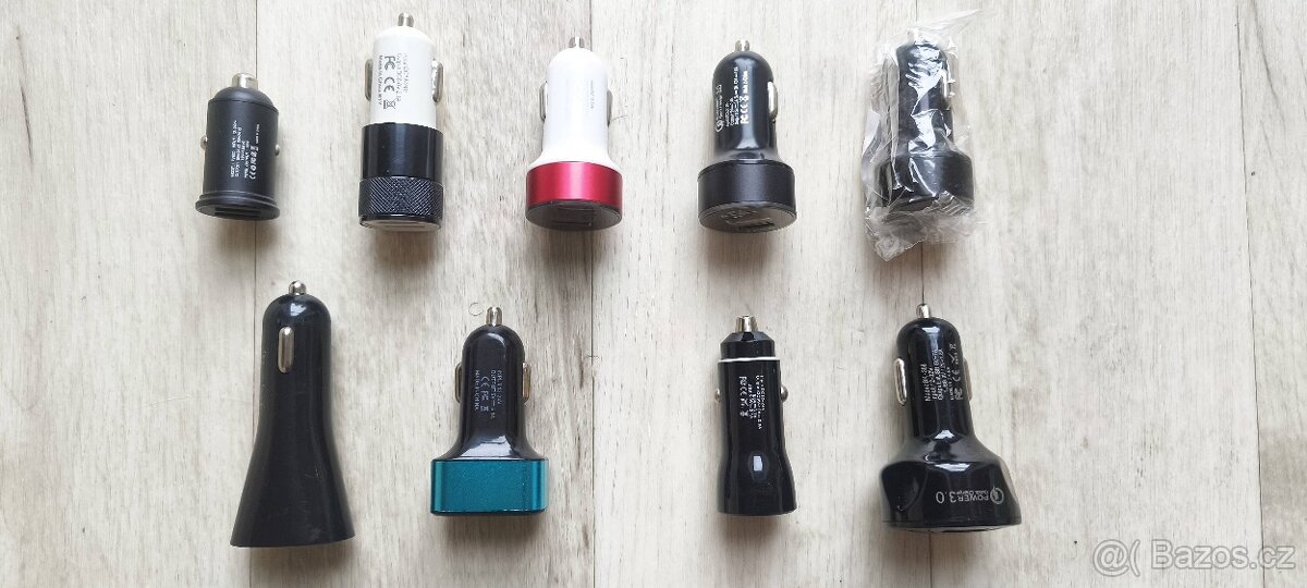 Prodám: několik různých rychlých vícenásobných USB nabíječek do auta, s 2x 3x 4x USB porty, výkonem 2A - 7A (mnohem rychlejší a výkonnější než běžné v obchodě které nabíjejí pomalu).
