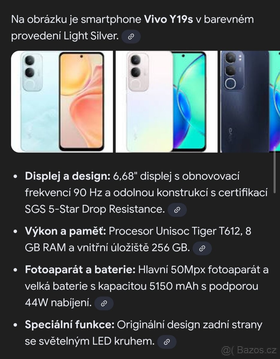 Vivo y19s - [9.1. 2026]Dobrý den prodám tento telefon Vivo y19s 6/128 je v krásném stavu je k němu krabička a kabel a na na displeji fólií a kryt a je stále v záruce záruka ještě 1 rok a 3 měsíce prodám za 2200 při rychlém jednání sleva a jen osobní předání
