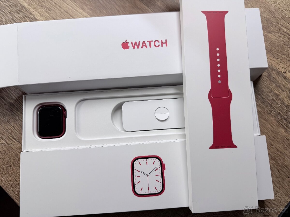 Prodám Apple Watch 7 41mm v červené barvě.