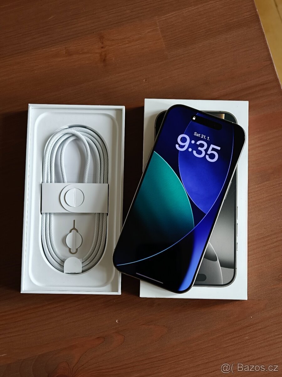Prodám Apple iPhone 16 Pro, paměť 256 GB, barva přírodní titan. Telefon je plně funkční, vyčištěný a připravený k používání. Akumulátor 93%