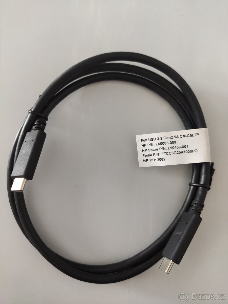 Prodám kabel USB-C na USB-C, generace 3.2., 5A, délka 1 metr. Výrobce Hewlett-Packard.