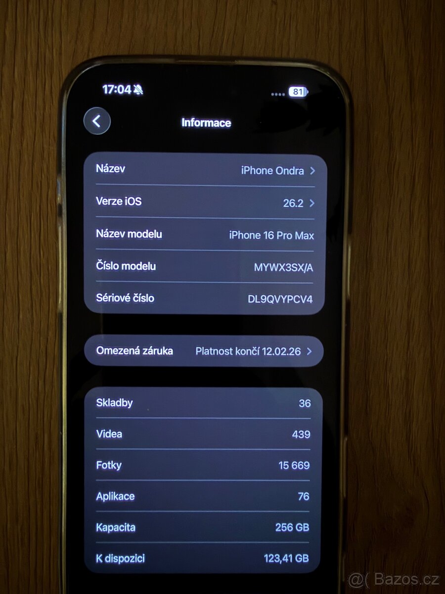 iPhone 16 Pro 256GB, jako nový, 12 měsíců záruka - [17.2. 2026]Prodám plně funkční iPhone ve výborném stavu. Prošel kontrolou a je připraven k okamžitému používání. Vše je možné před zakoupením vyzkoušet.