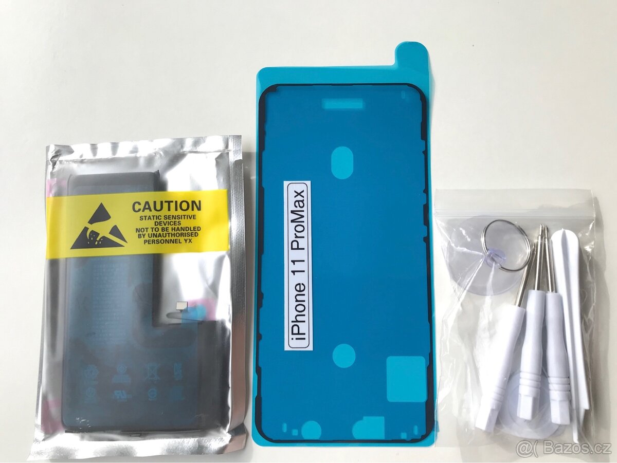 Nový se zárukou baterie pro Apple iPhone Japan 11 Pro Max, Lepící pásky pro přichycení baterie, sadu nářadí a lepící těsnění pod displej pro zachování voděodolnosti.