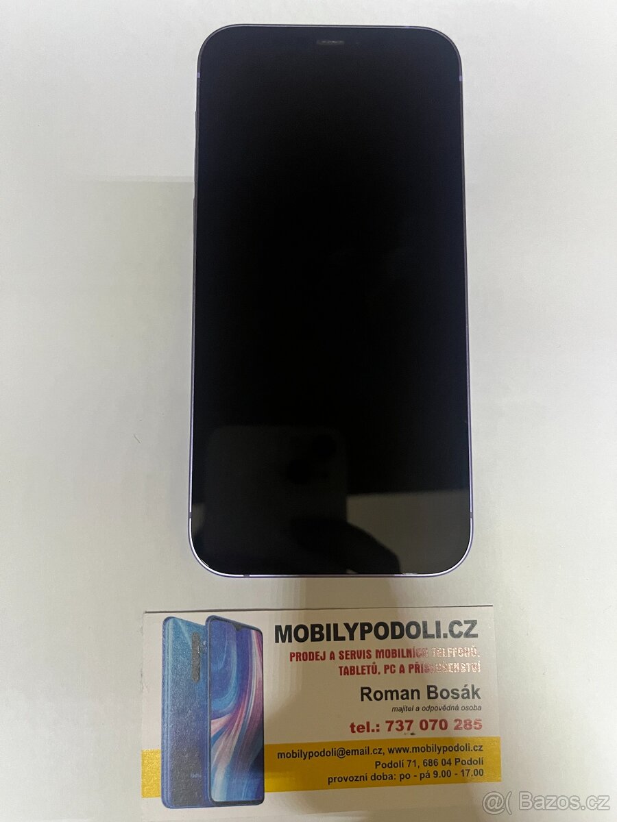 Nabízím krásný Apple iPhone 12 64Gb ve fialové barvě, odhlášený s půlroční zárukou a novou baterií - kondice 100%. Dodám krabičku a datový kabel, možno poslat zásilkovnou. Mrkněte i na mé další inzeráty.
