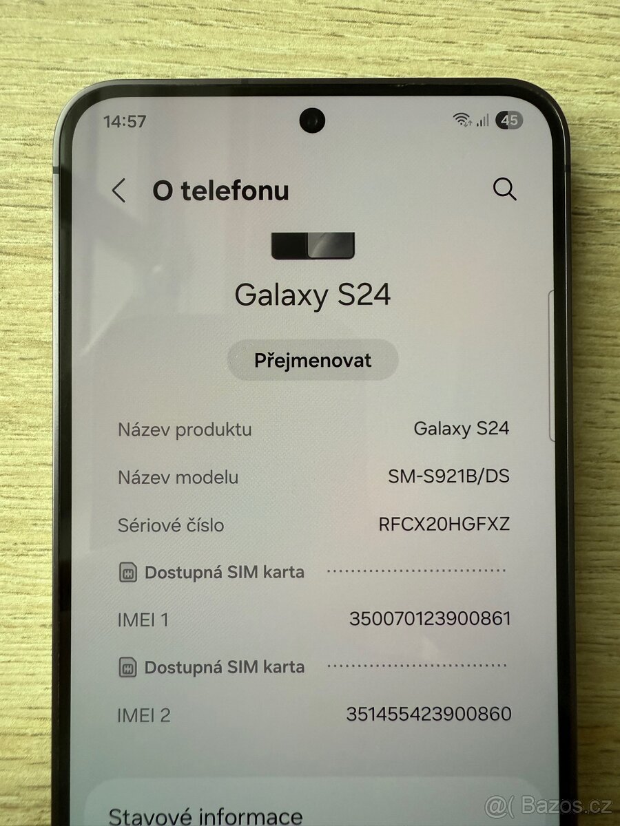Použitý telefon Samsung Galaxy S24 s vnitřní pamětí 256 GB a RAM 8 GB. Fotoaparát 50+12+10 Mpx a přední 12 Mpx. Baterie 4000 mAh ve 100% kondici. Displej Dynamic AMOLED 2x FHD+ 6,2”. Včetně datového/nabíjecího kabelu. Při rychlém jednání přidám kryt.
