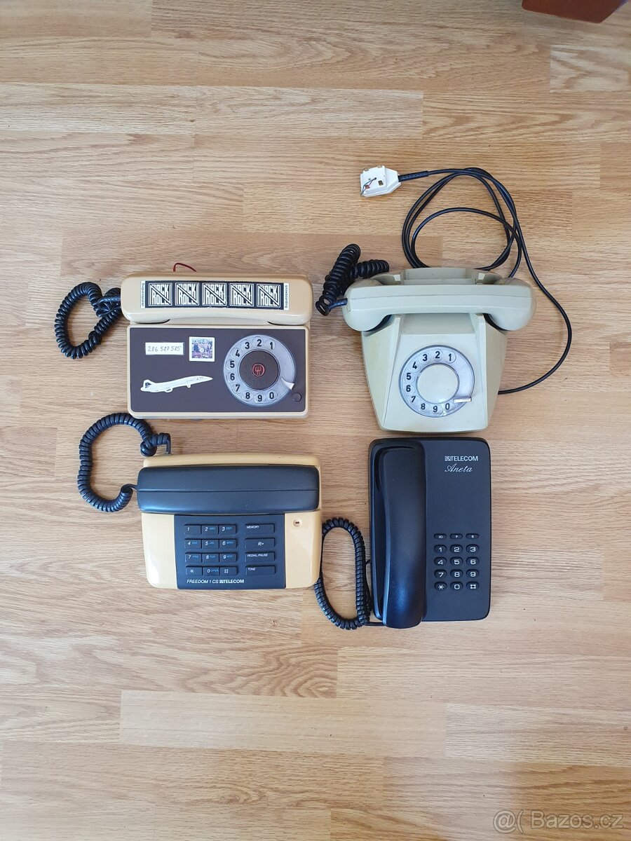 Retro stolní telefony, sluchátka - [8.2. 2026]Prodám 4x RETRO stolní telefony, sluchátka na pevnou linku viz foto. 200kč/1kus. Lze i jednotlivě.