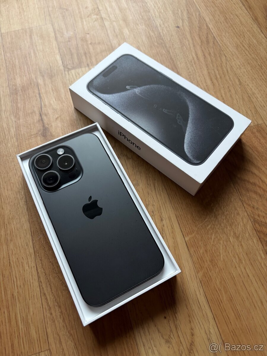 Prodám Apple iPhone 15 Pro 128GB v černé barvě titanu. Telefon v má jednu oděrku na displeji, téměř neviditelná viz. foto, jinak bez poškození. Kondice baterie 88 %.