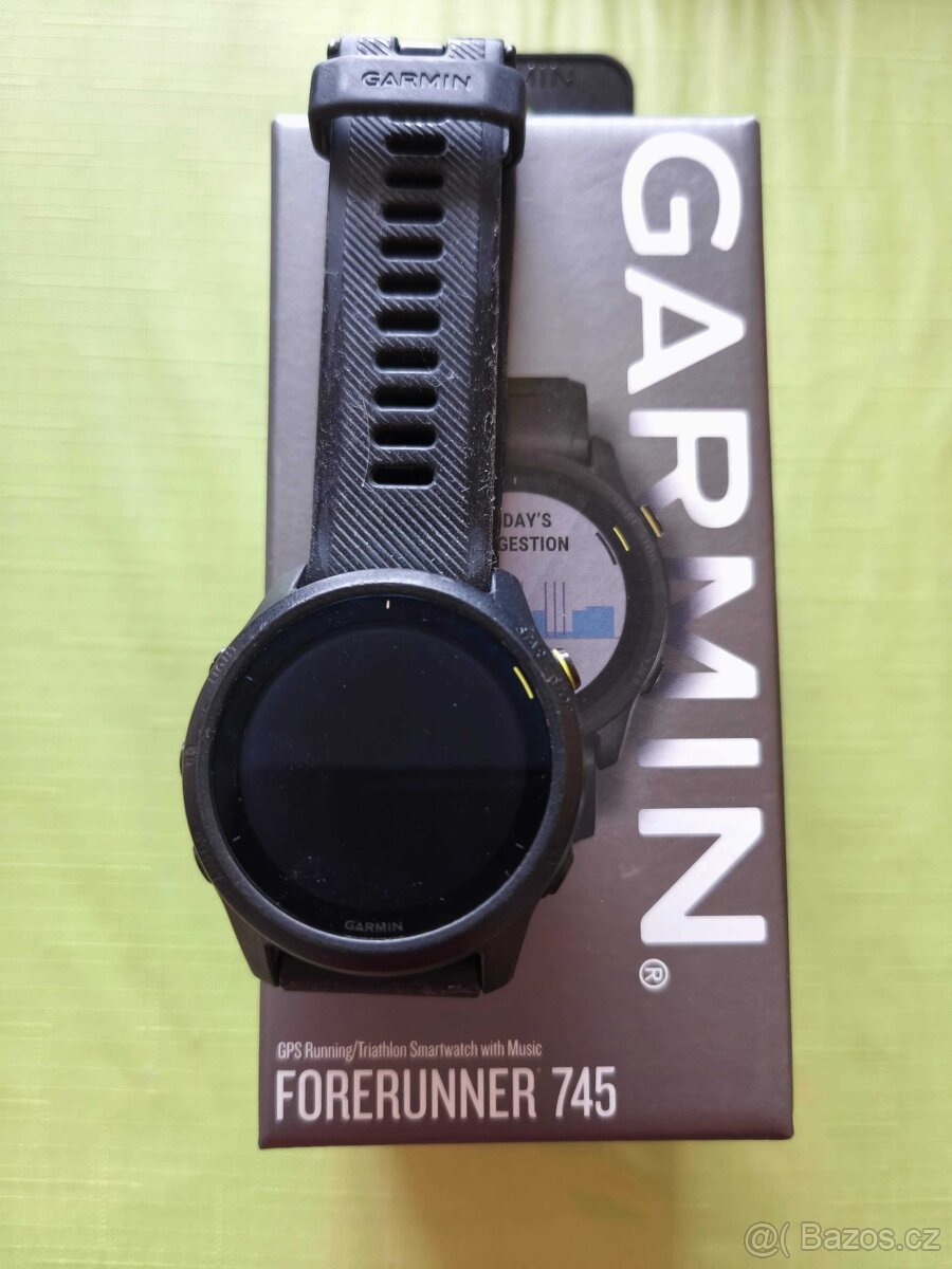 Hodinky Garmin Forerunner 745 - TOP - [13.1. 2026]Prodám starší hodinky Garmin Forerunner 745 s přehráváním hudby. Baterie vydrží 1-3 dny podle intenzity používání. Okolo ciferníku je světlý lem (viz foto), který ale nijak nezasahuje do displeje. Hodinky jsou plně funkční a resetovány do továrního n ...