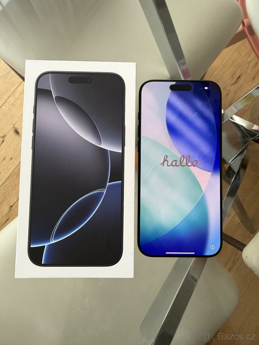 IPhone 16 pro 128 GB black titanium - [24.2. 2026]Chvíli používaný, ještě má rok záruku. Baterie 100%. ESim. Přidám obaly, ochranné sklo na přední sklo aj na fotoaparát.