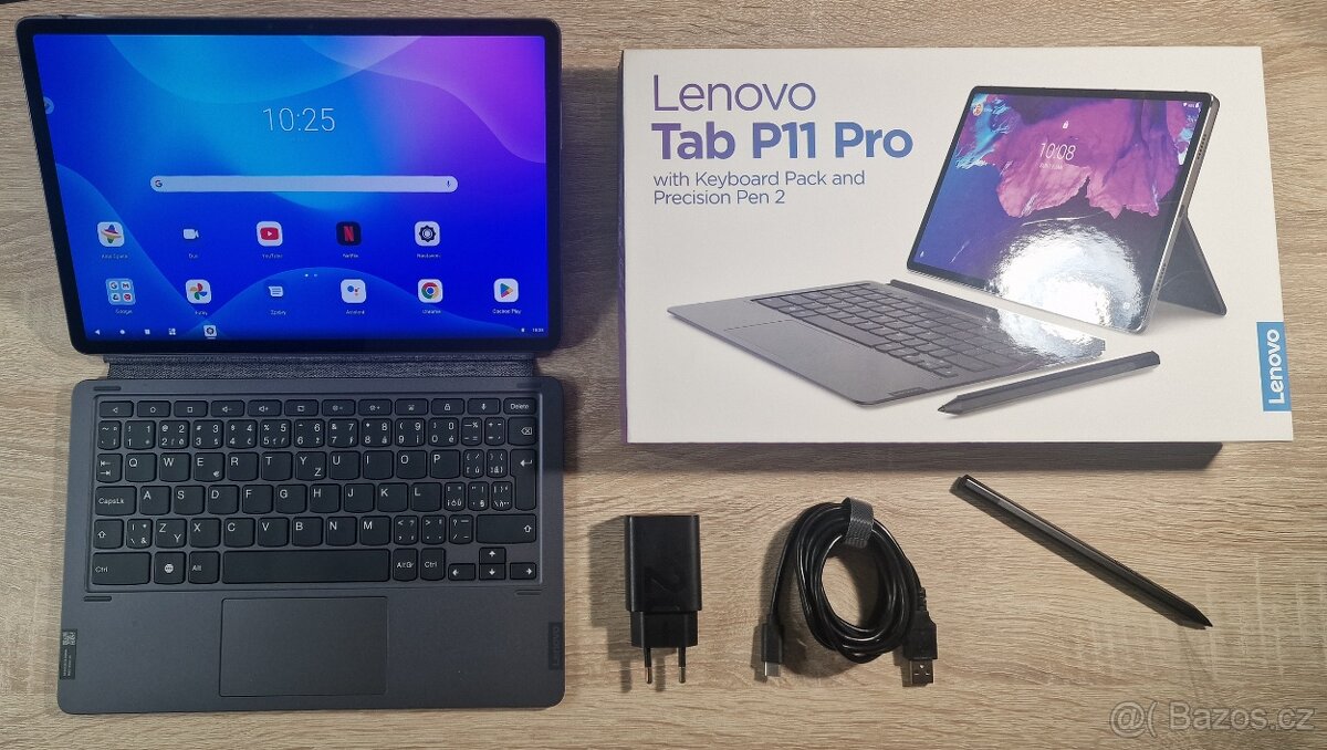 Prodám tablet Lenovo Tab P11 Pro s kompletním příslušenstvím. Originální Lenovo klávesnice s touchpadem a dotykové pero. Všechno plně funkční. Minimálně používaný.