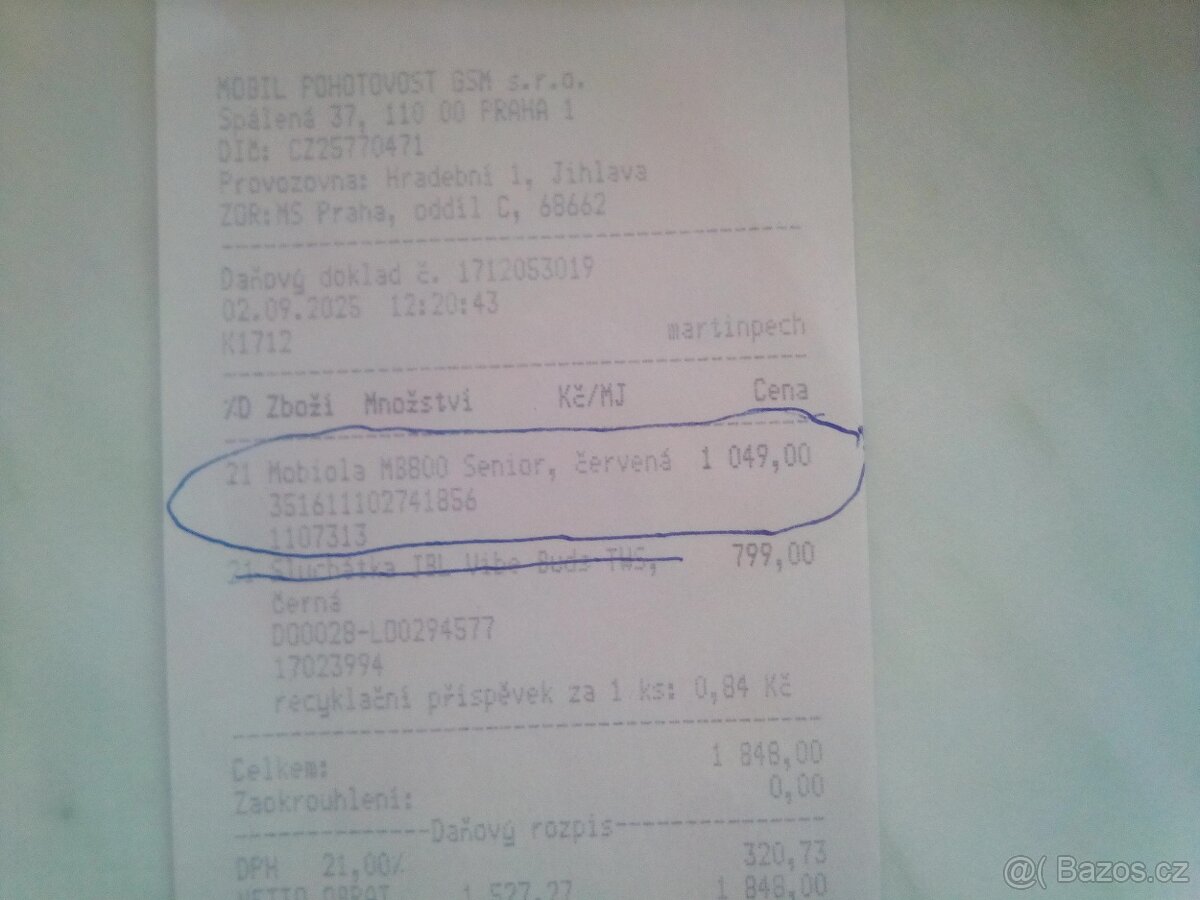 Prodám mobilní telefon pro seniory s velkými tlačítky téměř nový v záruce s novou SIM a kreditem 440 Kč.