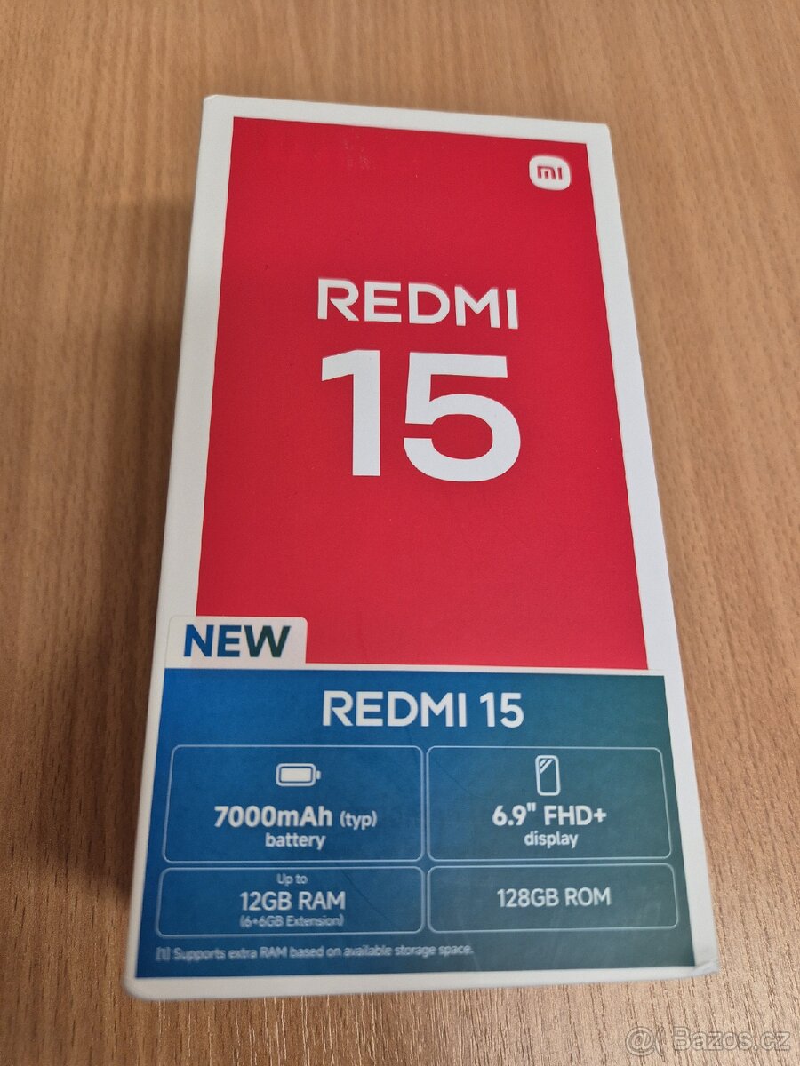 Prodám úplně nový smartphone Xiaomi Redmi 15 ve fialové barvě (Sandy Purple). Operační paměť 6 GB, vnitřní paměť 128 GB. Prodávám bez záruky a za super cenu!