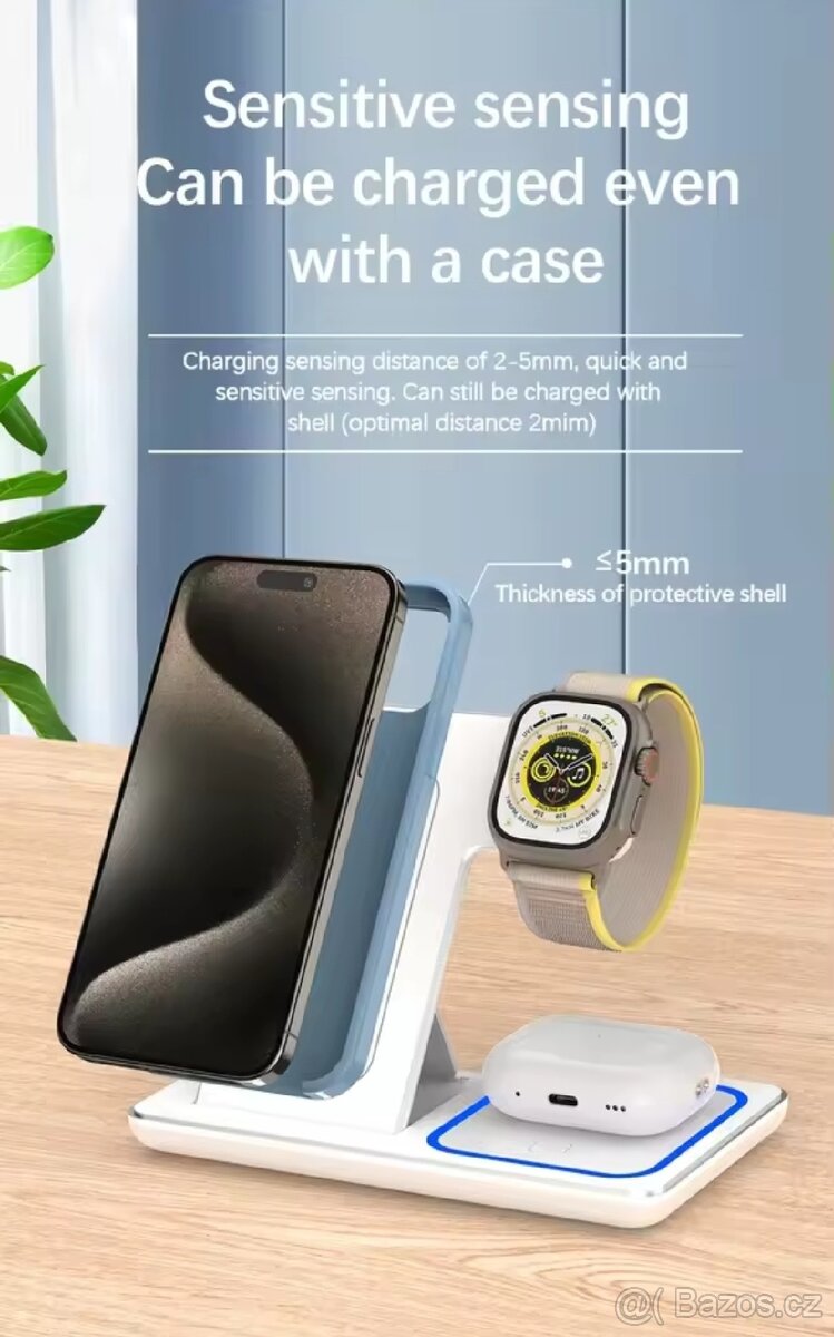 Nabízím novou, nepoužitou 3v1 bezdrátovou nabíjecí stanici vhodnou pro současné nabíjení telefonu, hodinek a sluchátek.Díky duální nabíjecí cívce poskytuje stabilní a rychlé nabíjení bez přerušování a bez přehřívání. Podporuje také Samsung telefony a všechny Qi zařízení.