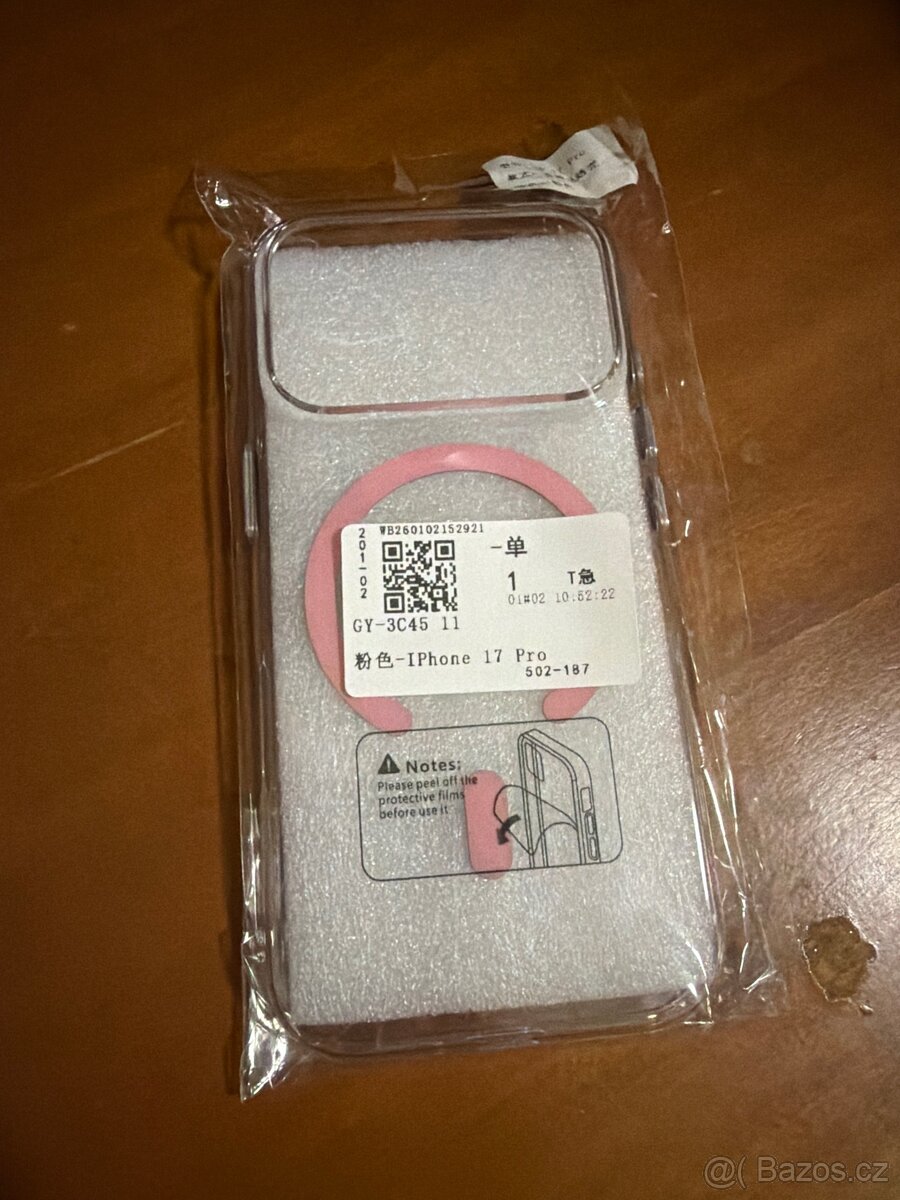 Nový kryt pro iPhone 17 Pro, průhledný plast, s ochranou MagSafe 360 , uzavřený.