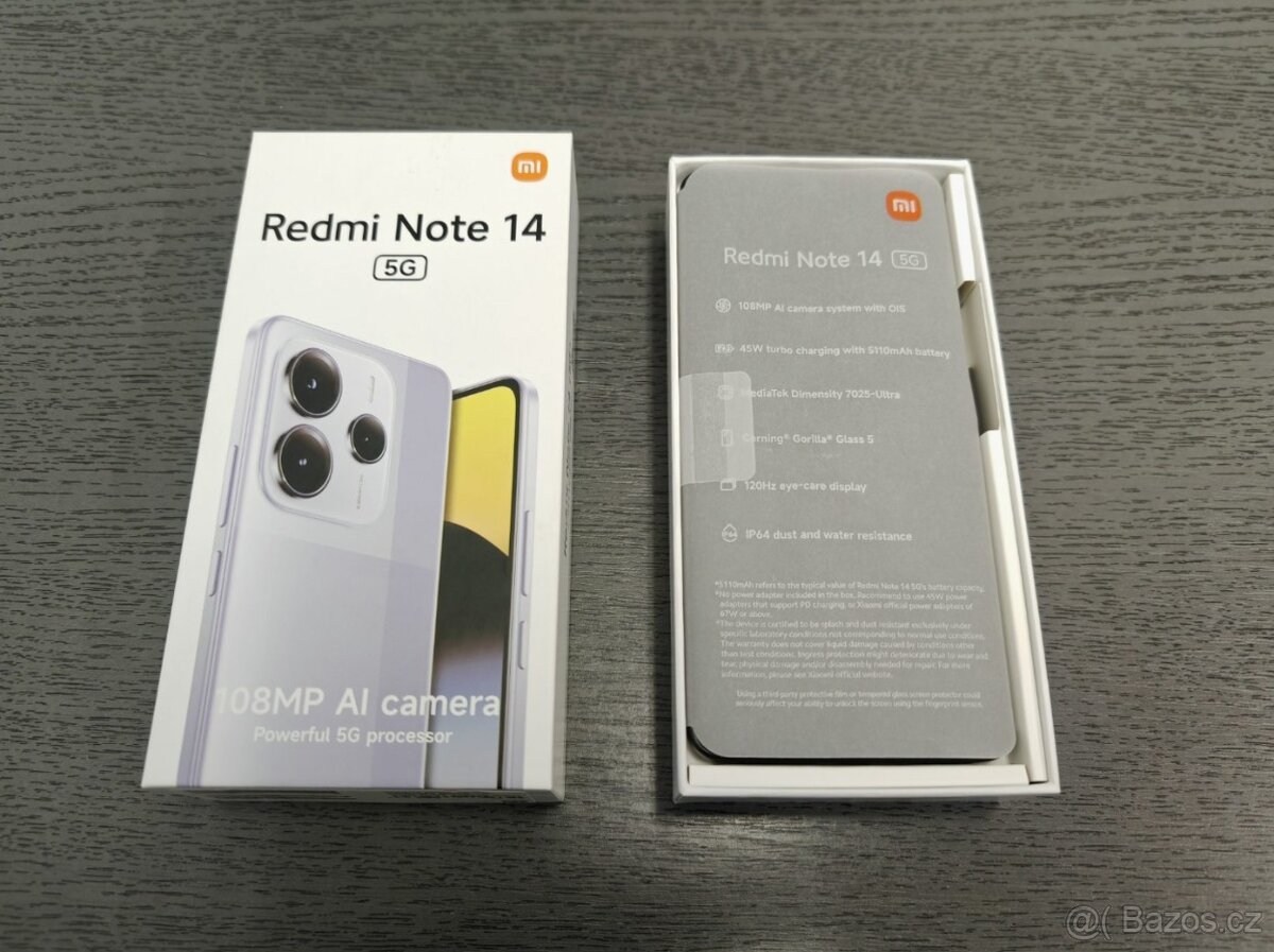 Prodám Xiaomi Redmi Note 14 5G, 8/256GB, nový nepoužitý, záruka 12 měsíců.