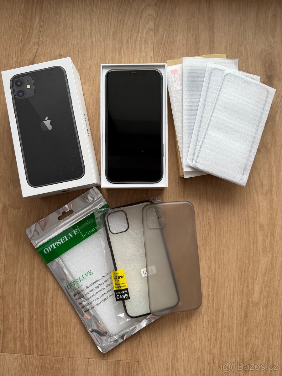 Nabízím použitý mobilní telefon Apple iPhone 11 64GB černé barvy, velikost 6,1” a 64GB paměť.