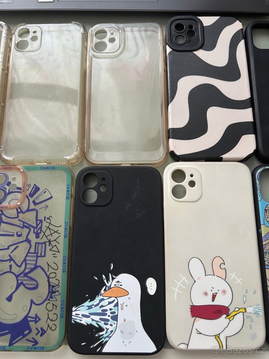 Obaly a ochranná skla na iPhone 11 obaly používané jedno sklo a sklo na fotoaparát prasklé ne moc viz foto