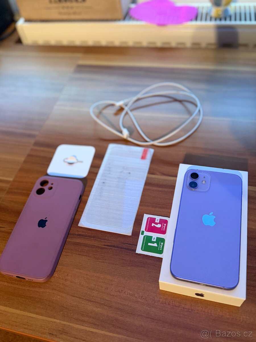 Prodam iPhone 12 fialovy. Kapacita: 64GB, baterka 87%, na displeji je tvrzene sklo, celou dobu noseny v obale. Telefon je v peknem stavu!! Je odhlaseny a dany do tovarniho nastaveni. Obsah baleni: telefon, krabicka, kabel, jehla, kryt fialovy, nahradni tvrzene sklo. Prodavam z duvodu koupe novejsiho modelu. Moznost vyzkouseni ve Velkych Opatovicich