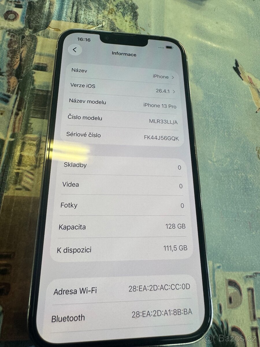 iPhone 13 Pro 128GB - [27.4. 2026]Dobrý den, prodám svůj iPhone 13 Pro s velikostí úložiště 128 GB. Nese známky používání (poškrábaný displej s lehkou prasklinkou a praskla zada), vyřešeno nalepením ochranného skla a dbrand skinu na záda telefonu. Při zajmu můžu sloupnout.